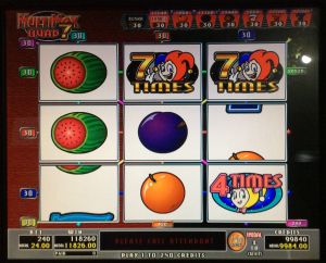 スイカ、7倍、7倍の並び配当とanyの配当で10万枚を超えて来ました。