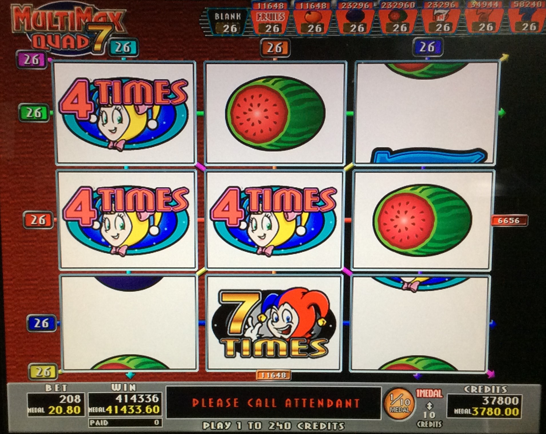 今回は4倍が3枚と7倍が1枚で414,336枚のJP!