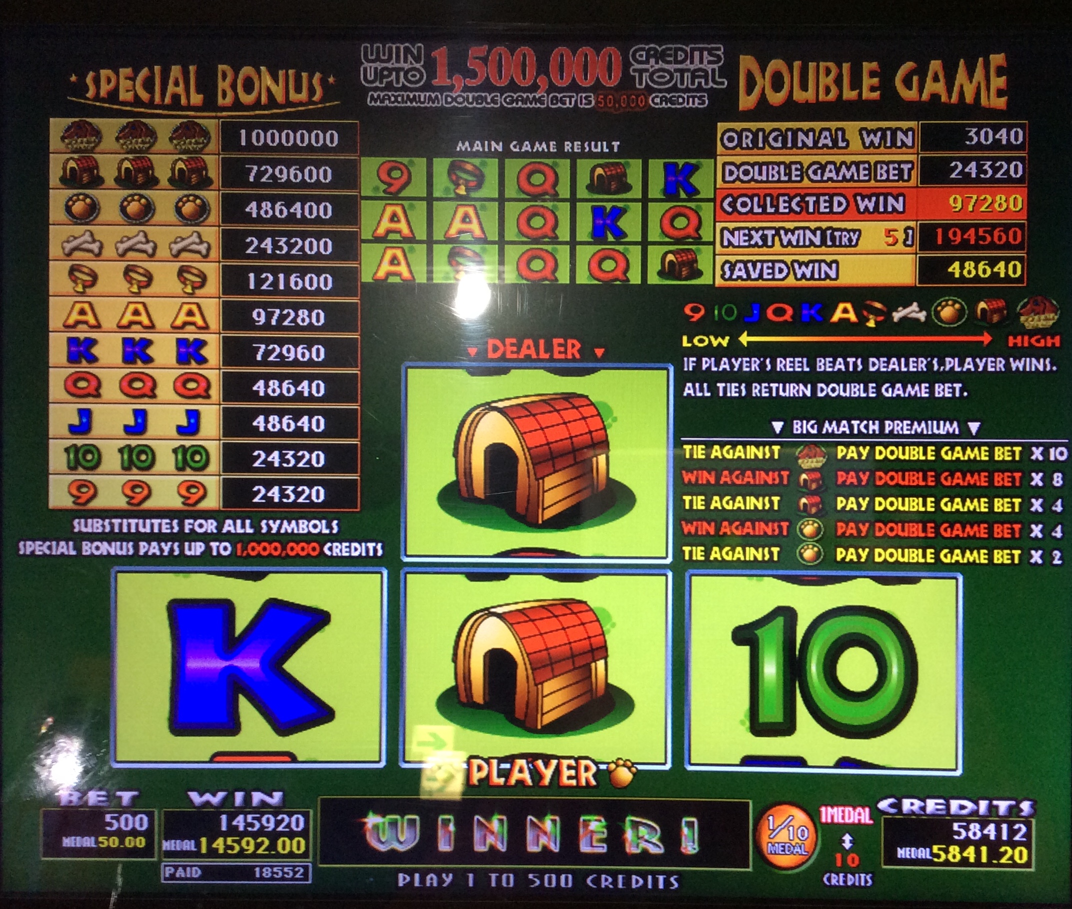 3,040枚の当たりから、最後は「犬小屋」引きまして14万枚OVER