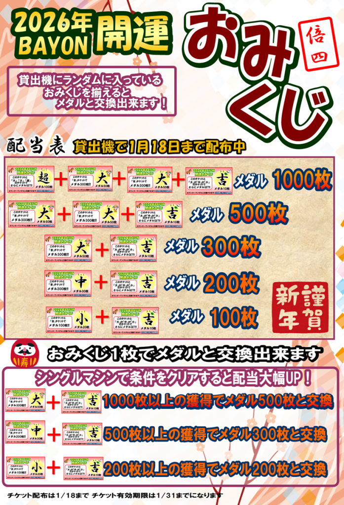 - バイヨンメダル開運おみくじ開催!! - 2026年1月1日