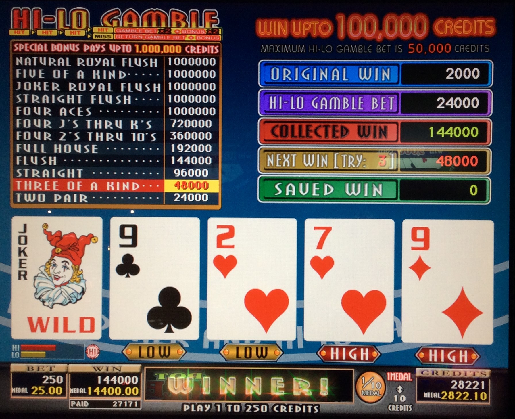 48,000枚を掛けた良い所でハイローギャンブルの最初のCARDはJOKER!