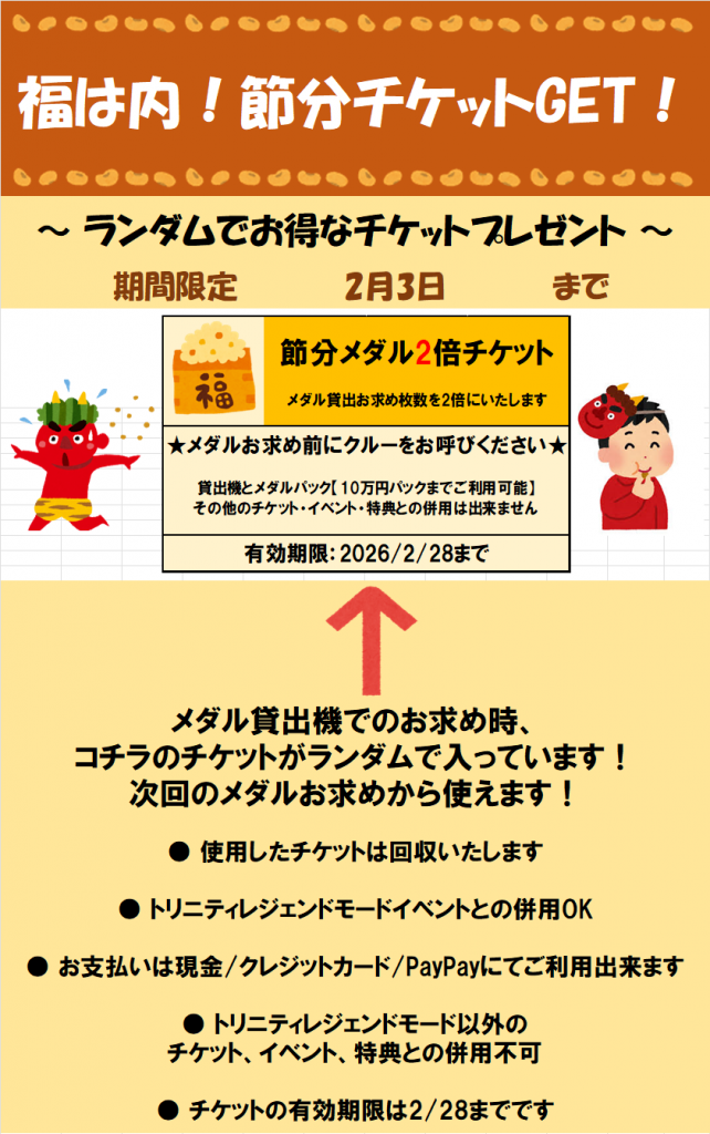 - 福は内!節分メダルイベント開催!2/3まで - 2026年1月30日