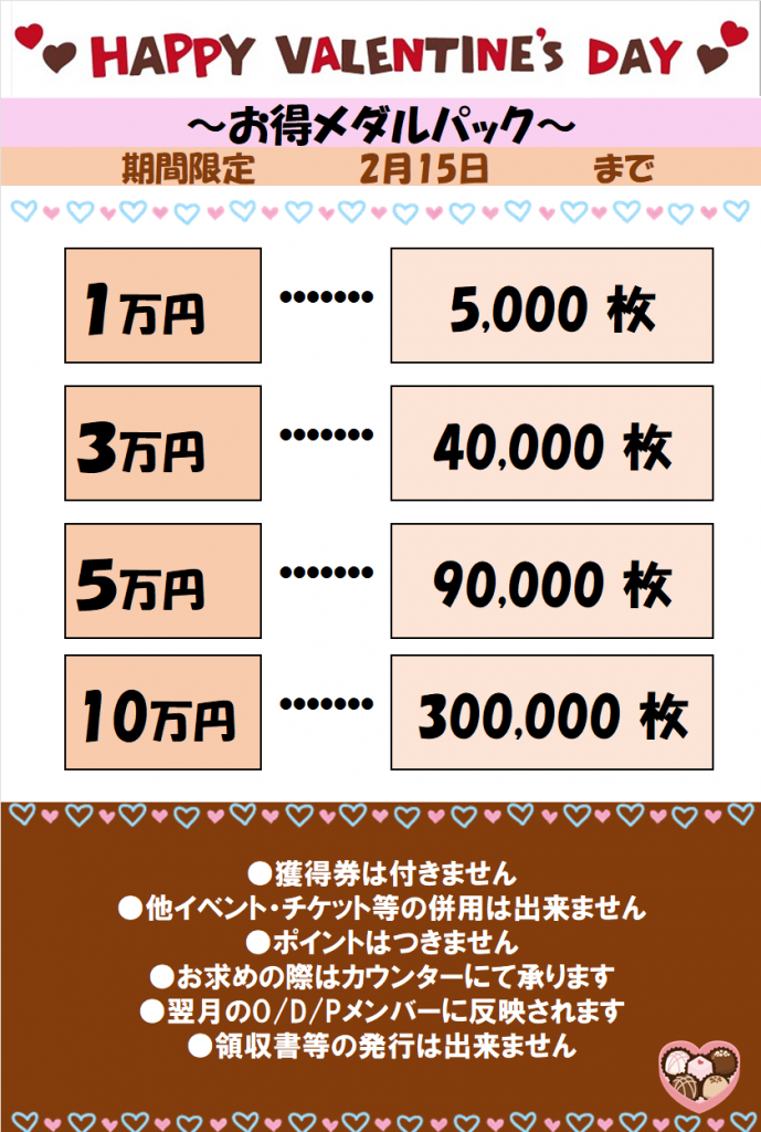 メダルがとってもお得なバレンタインパックスタート♪