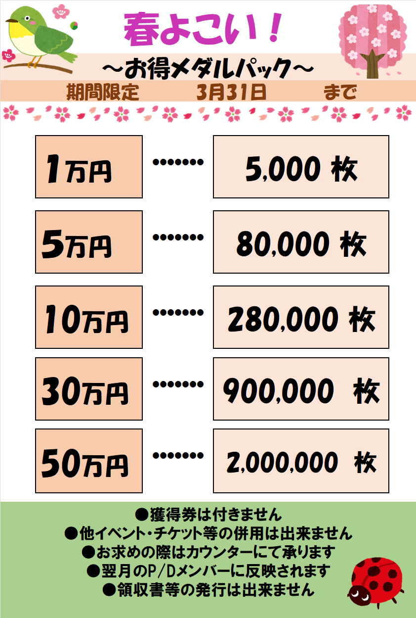 - 限定、春よこい!メダルパック販売中 3/31まで - 2026年3月3日